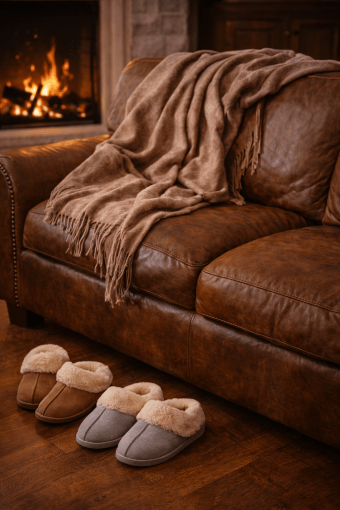 Lighting alone can completely change the mood of a room. Turning off overhead lights and relying on lamps or candles instantly makes a space feel more intimate and restful. Even simple things—like drawing the curtains early or lighting a single candle—signal that this evening is different from the rest.